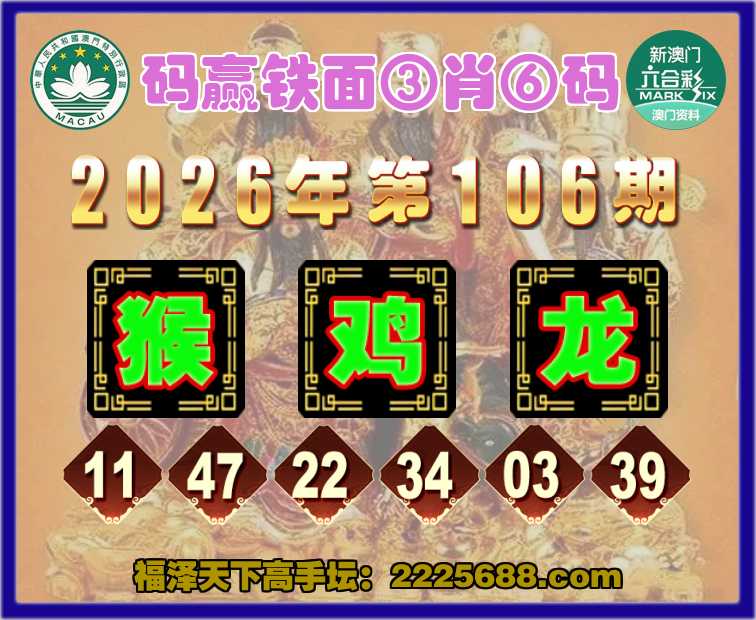 106期:《码赢铁面》 🚵‍♀️③肖⑥码🚵‍♀️【猴鸡龙】开:00准